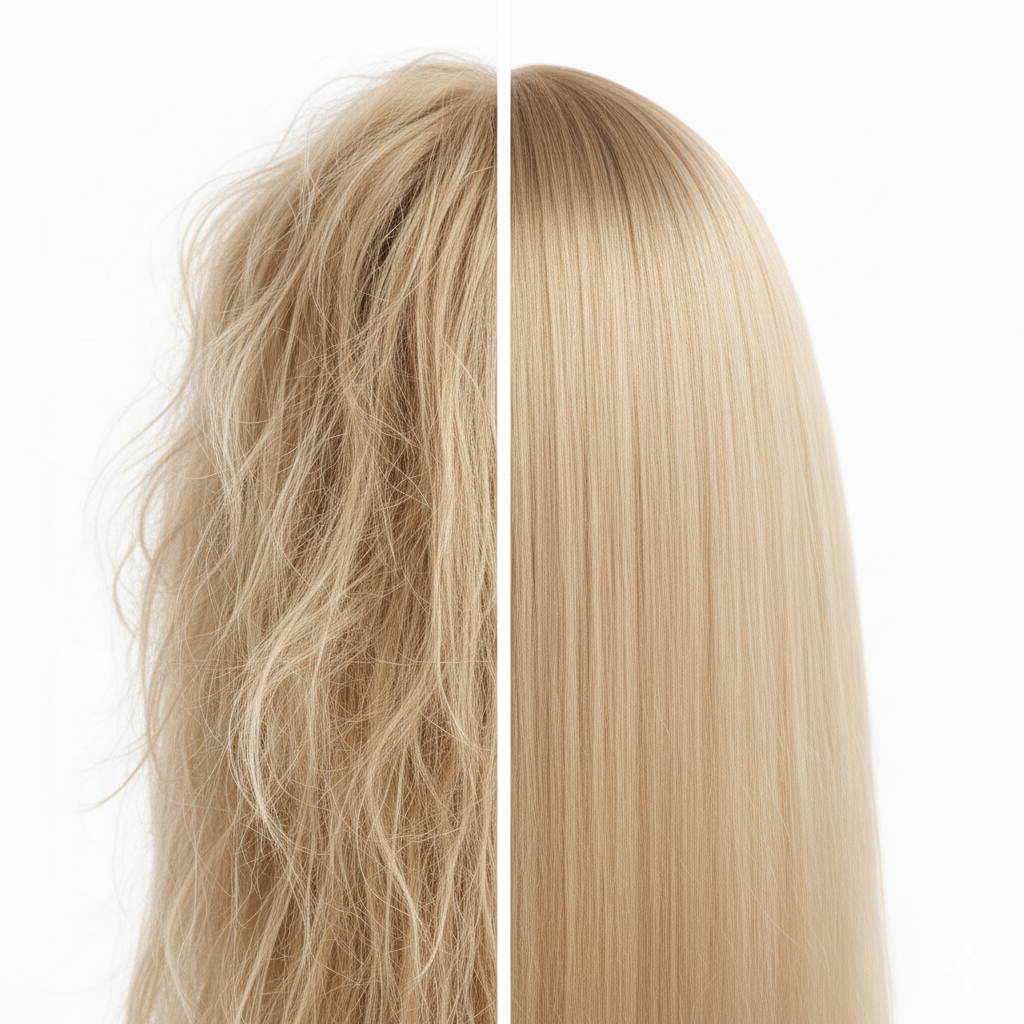Sua fórmula combina poderosos ativos como Macadâmia, Argan, Queratina e Vitaminas A e E. Essa união proporciona recuperação imediata, resistência e elasticidade aos fios, agindo de dentro para fora para reverter os danos mais severos.